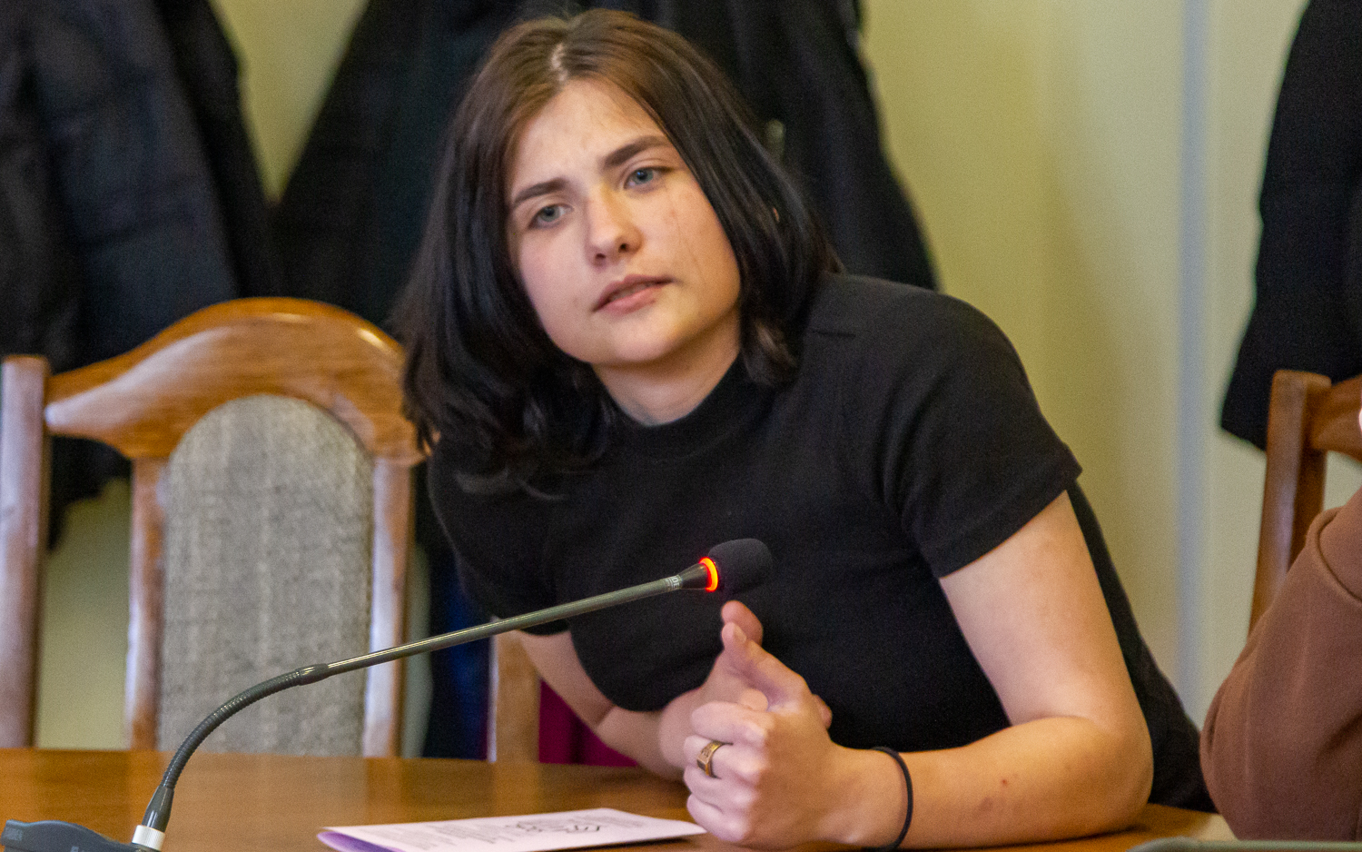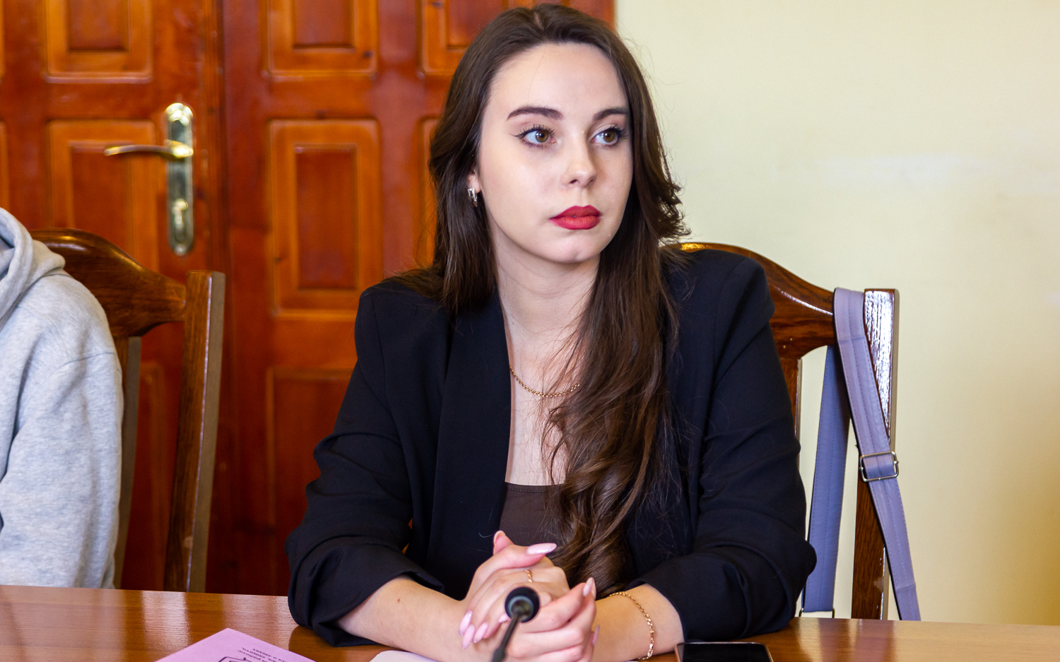 Опытом прохождения педагогической практики поделилась студентка третьего курса А. Семенюк. Она рассказала о своей работе в органах опеки и попечительства и призналась, что мечтает в будущем открыть собственный центр помощи детям, оказавшимся в трудной жизненной ситуации. А. Семенюк также рассказала о возможности получения студентами специальных стипендий, в том числе Президента ПМР и компании «Шериф».