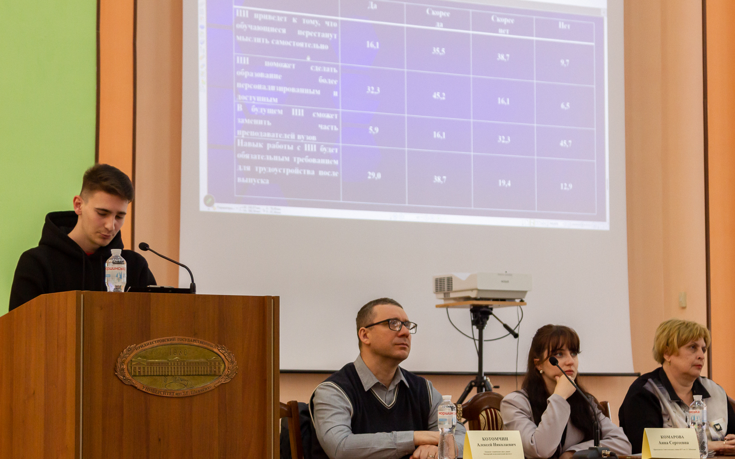 В докладе о влиянии систематического использования искусственного интеллекта на критическое мышление молодежи студенток факультета педагогики и психологии А. Шатайло и К. Глусской была затронута проблема того, как постоянное обращение к ИИ влияет на способность молодых людей самостоятельно анализировать информацию и принимать решения.