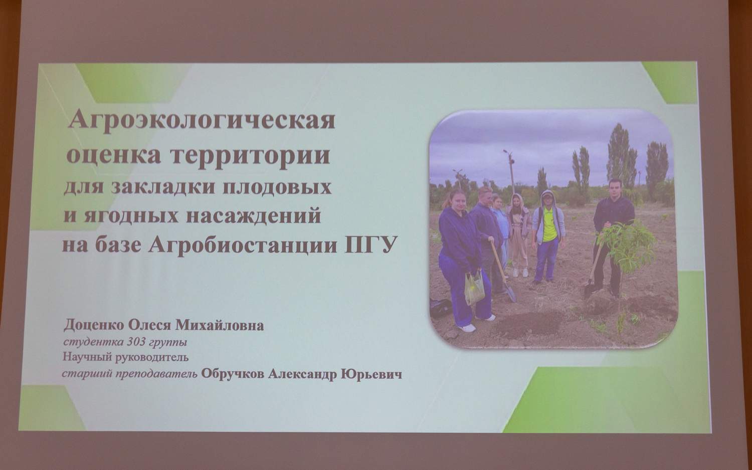 Об агроэкологической оценке территории для закладки плодовых и ягодных насаждений на базе агробиостанции ПГУ сообщила студентка аграрно-технологического факультета О. Доценко. В результате исследования было выявлено, что территория агробиостанции в целом пригодна для закладки плодовых и ягодных культур, однако имеет ряд ограничений. Среди них – низкое содержание гумуса и доступного азота, слабощелочная реакция почвы, климатические риски. Вместе с тем докладчик отметила высокую обеспеченность почвы фосфором и калием, хорошие показатели приживаемости саженцев и благоприятные условия для семечковых и орехоплодных культур. Для ягодных насаждений, по мнению студентки, необходимы дополнительные мелиоративные мероприятия, включая локальное подкисление почвы.