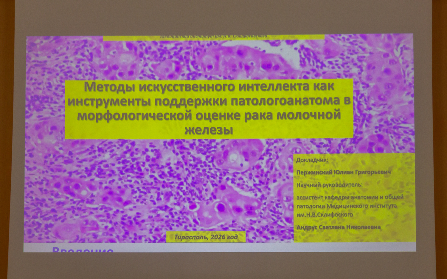 Студент Медицинского института им. Н.В. Склифосовского Ю. Пержинский рассказал о методах искусственного интеллекта как инструменте поддержки патологоанатома в морфологической оценке рака молочной железы. В работе были рассмотрены возможности использования моделей ИИ для автоматизированного анализа гистологических препаратов на тканевом, клеточном и субклеточном уровнях. По словам автора, полученные в результате исследования выводы подтверждают, что ИИ может стать эффективным инструментом поддержки патологоанатома и сократить временные затраты при сохранении качества диагностики.