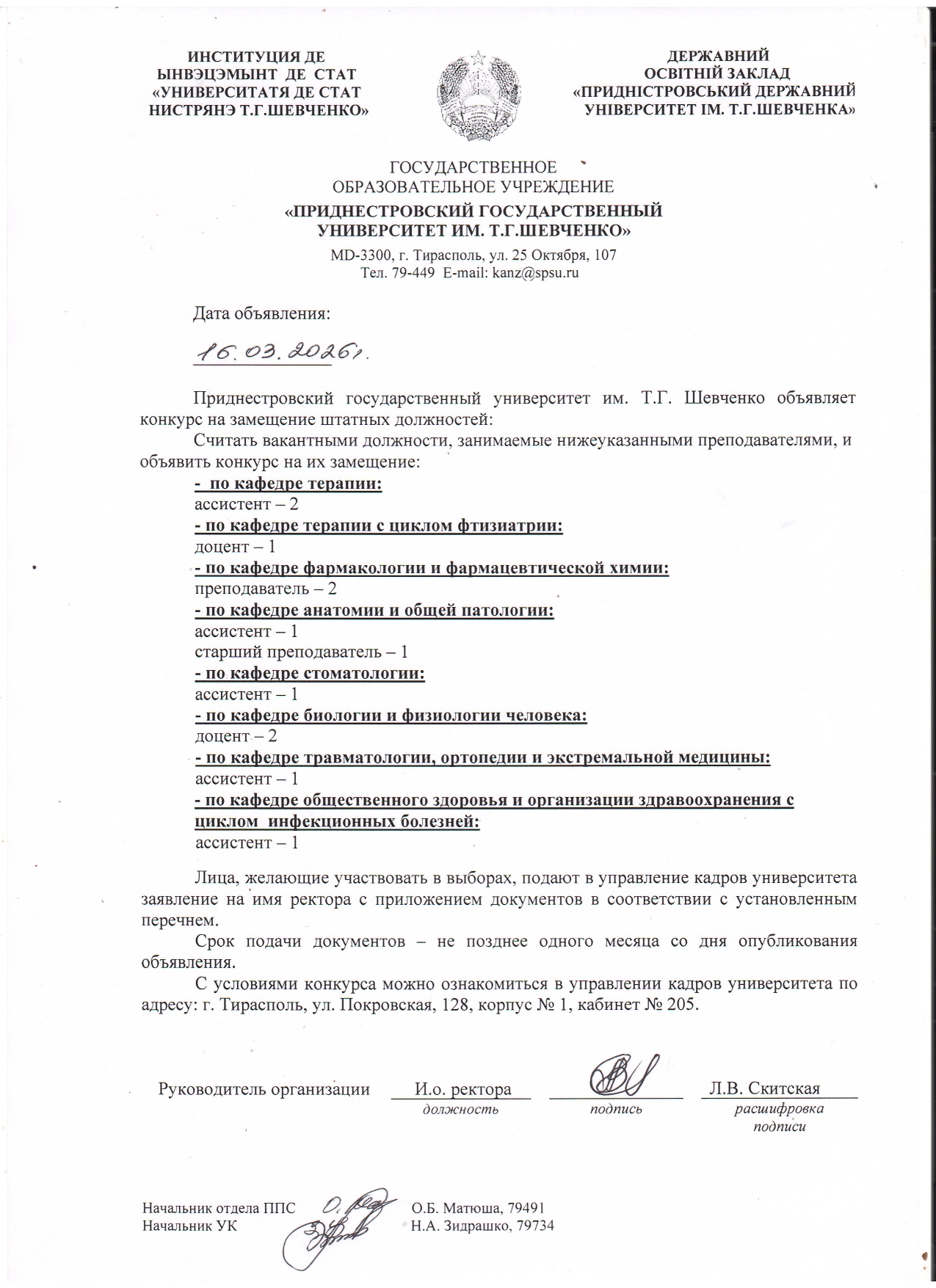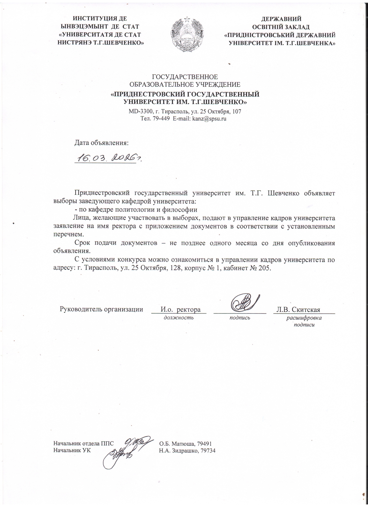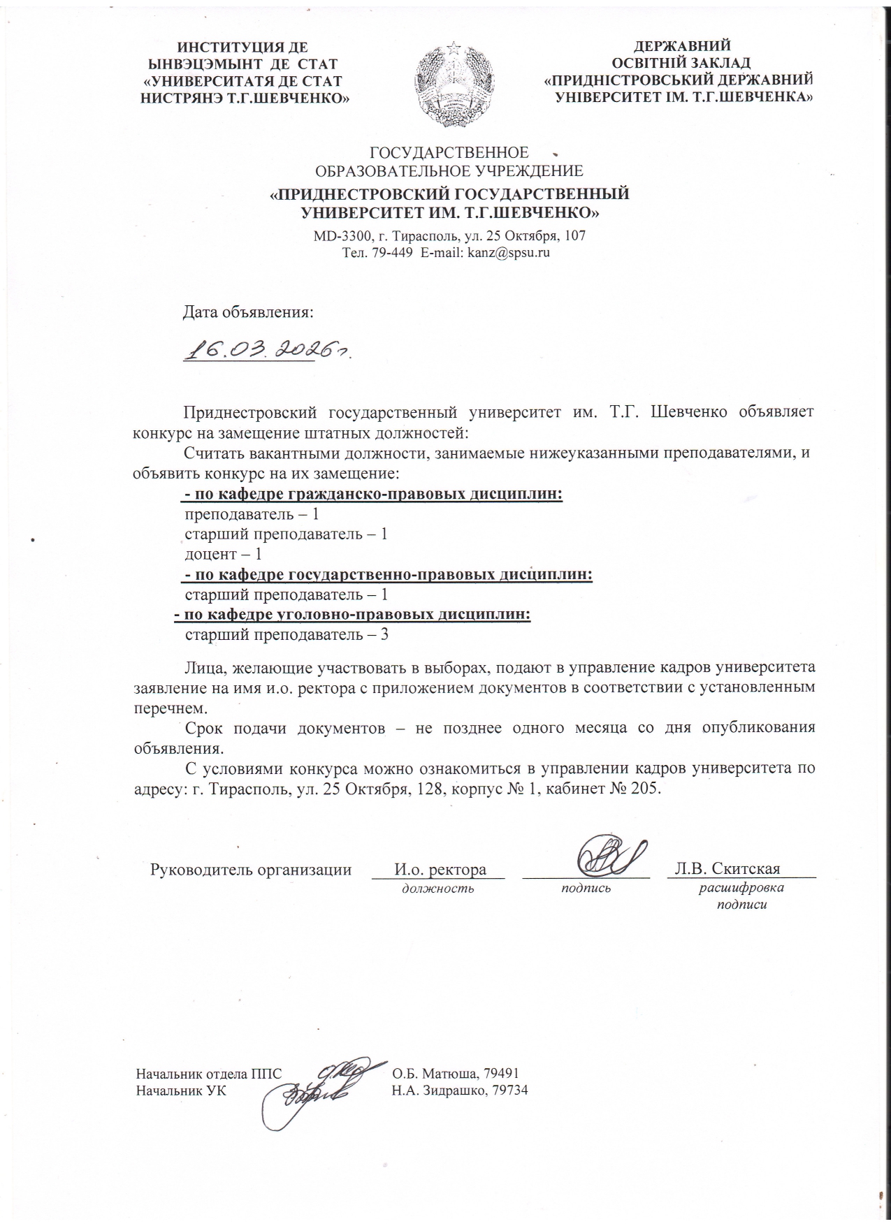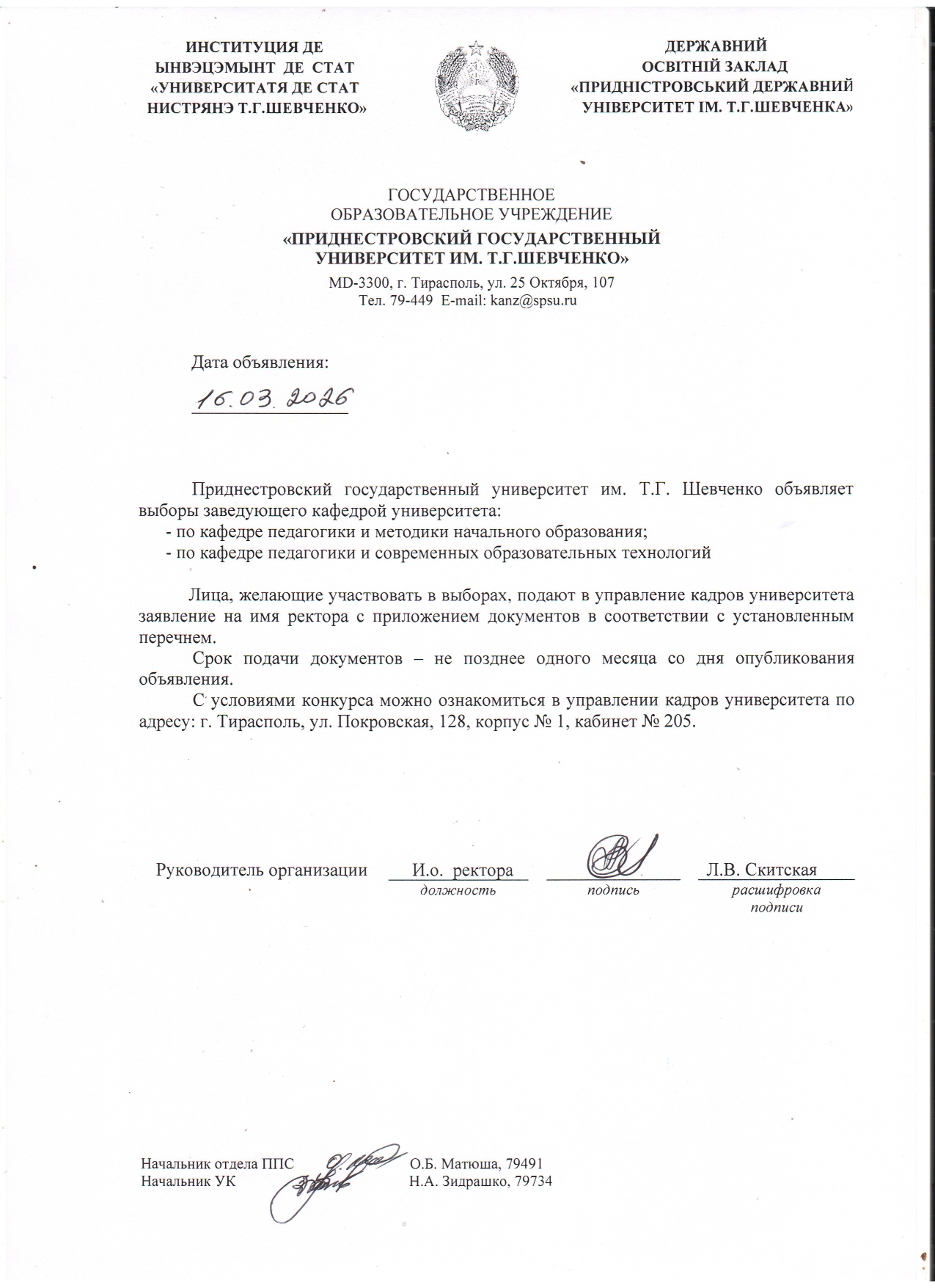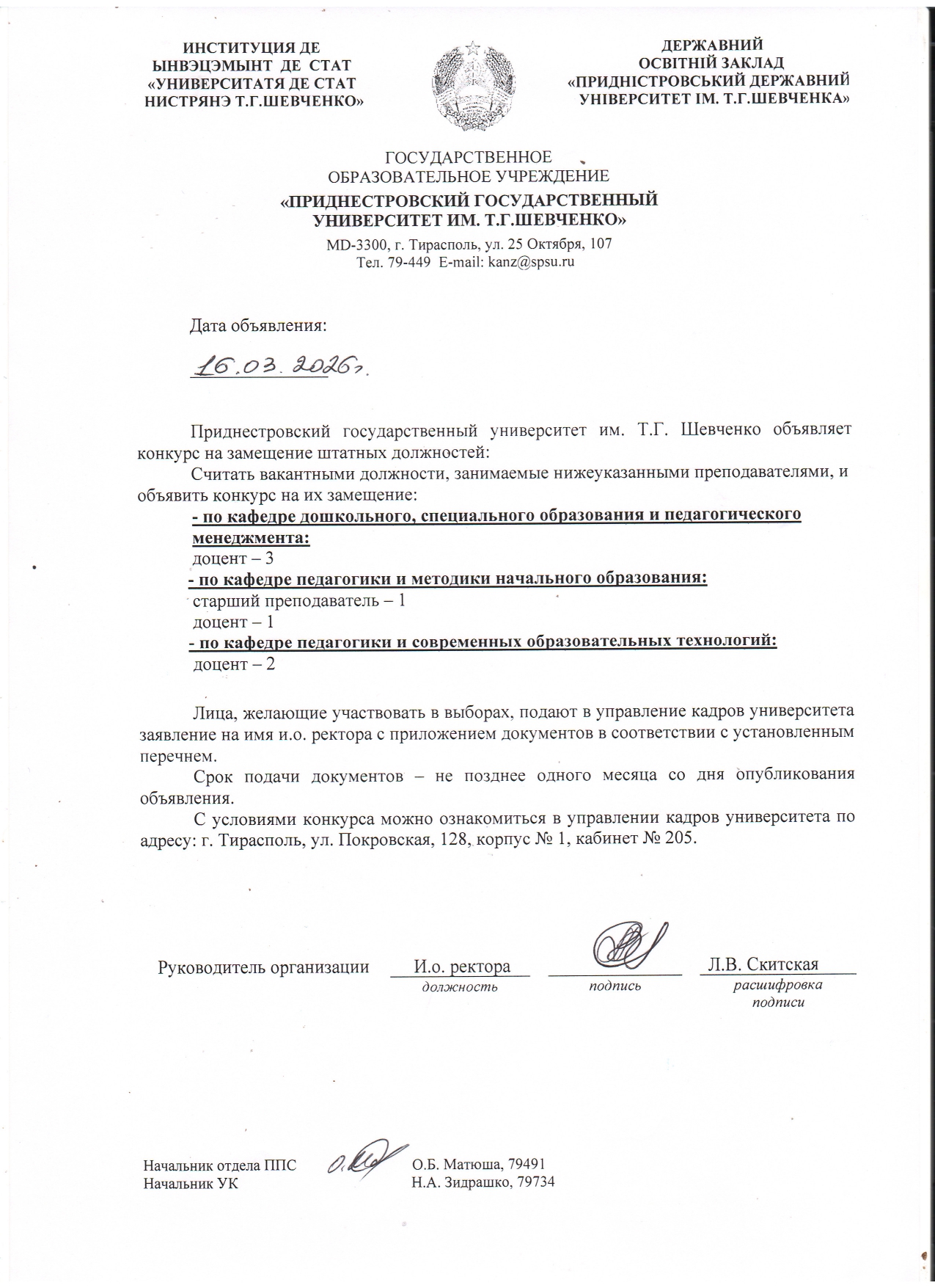 - 1. Положение о порядке замещения должностей профессорско-преподавательского состава ГОУ «ПГУ им. Т.Г. Шевченко».