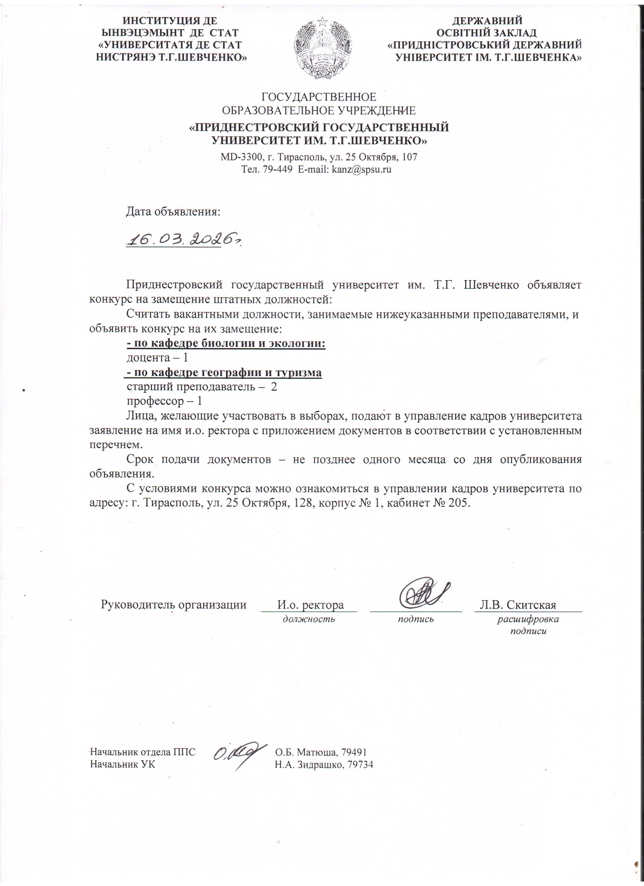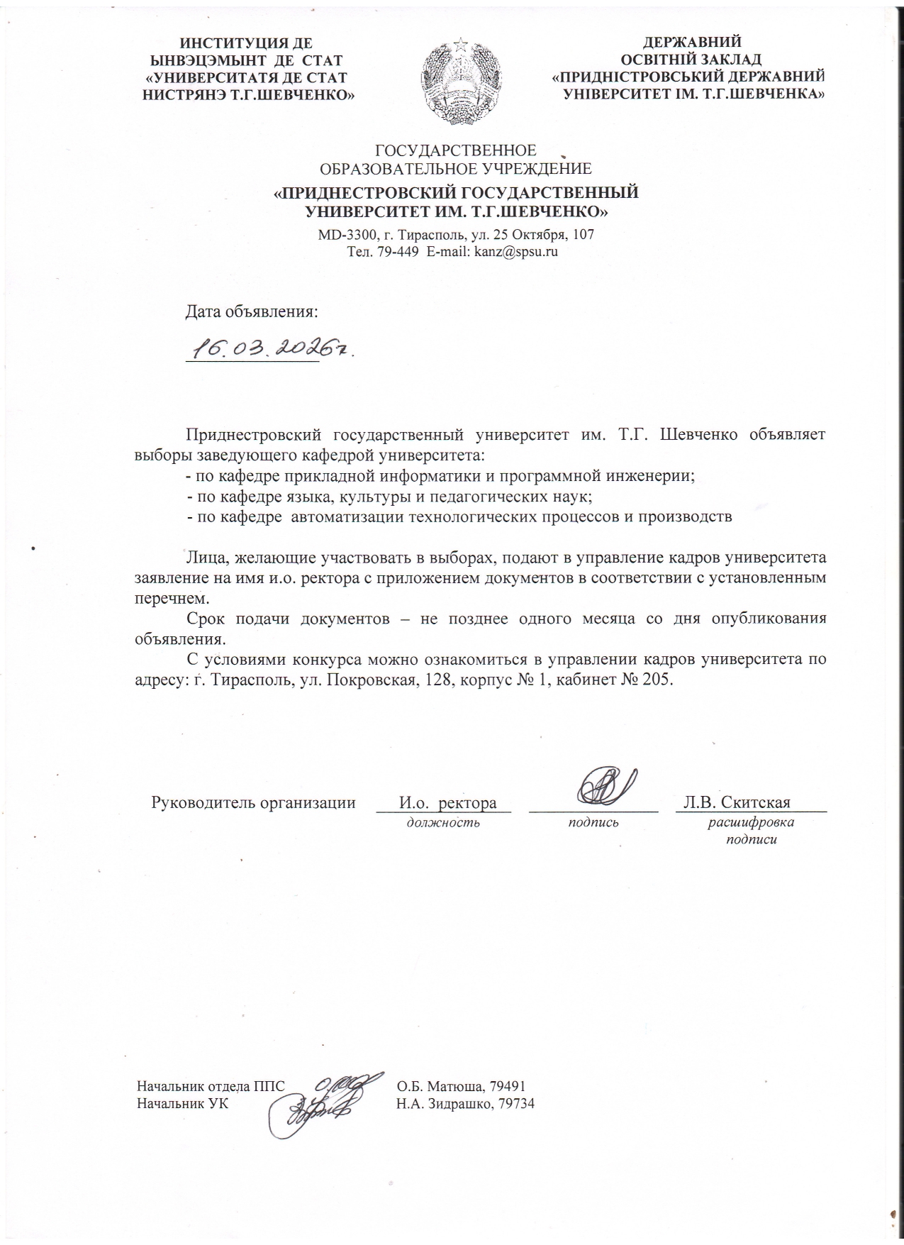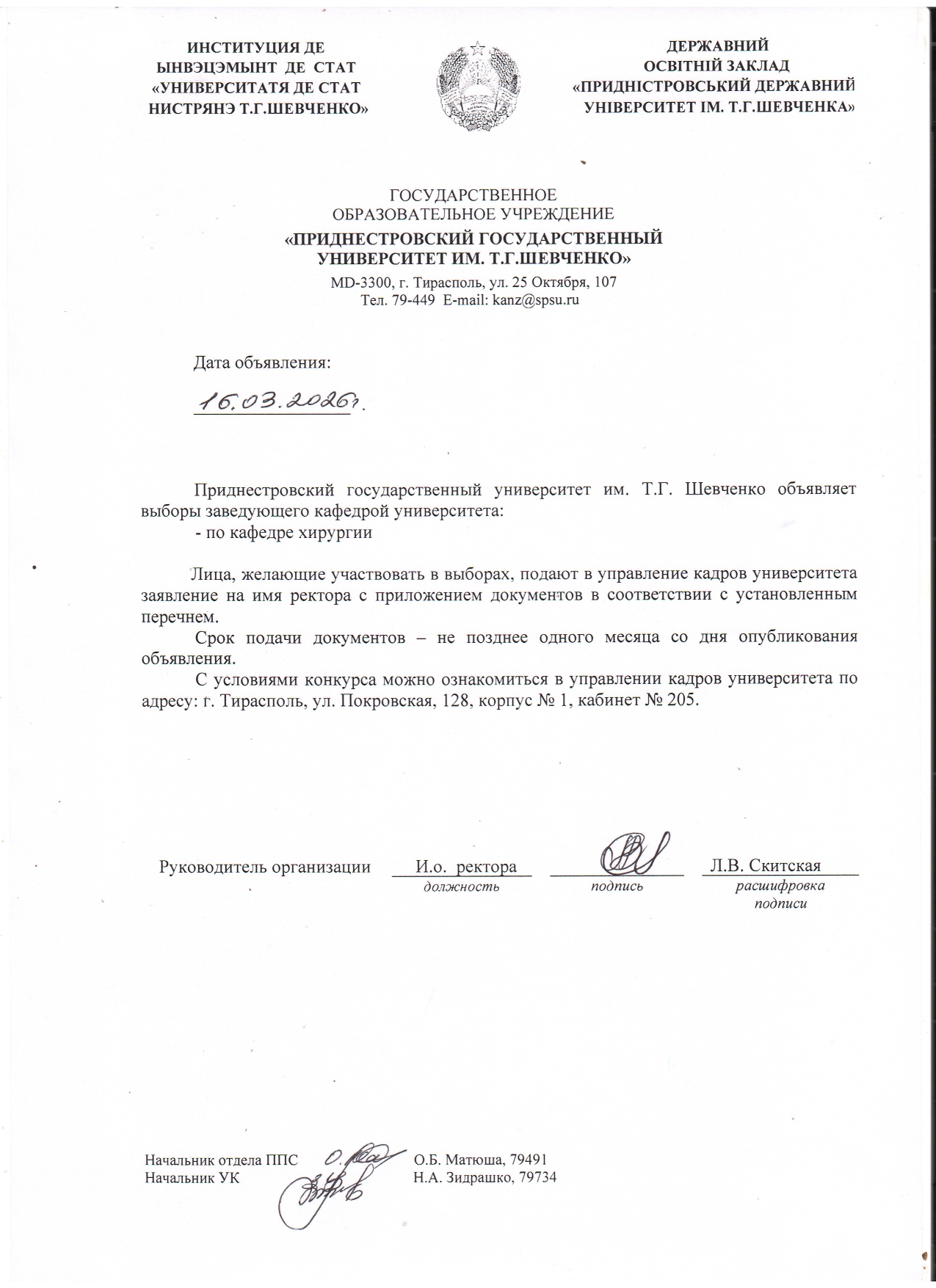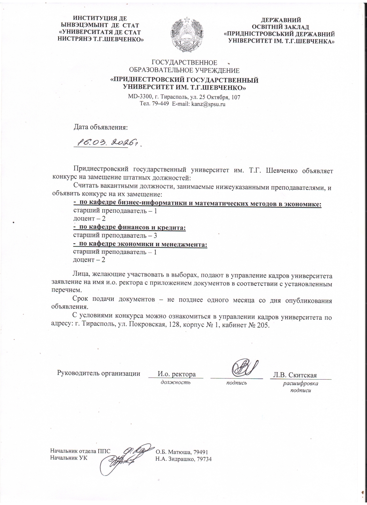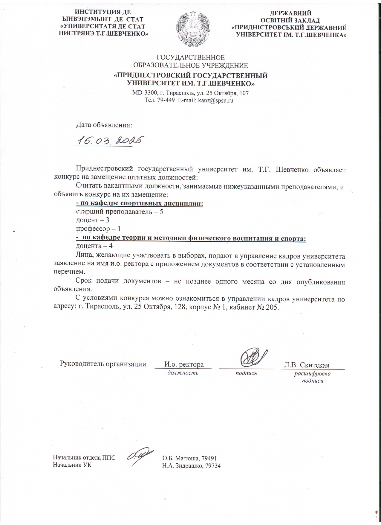 - 1. Положение о порядке замещения должностей профессорско-преподавательского состава ГОУ «ПГУ им. Т.Г. Шевченко».